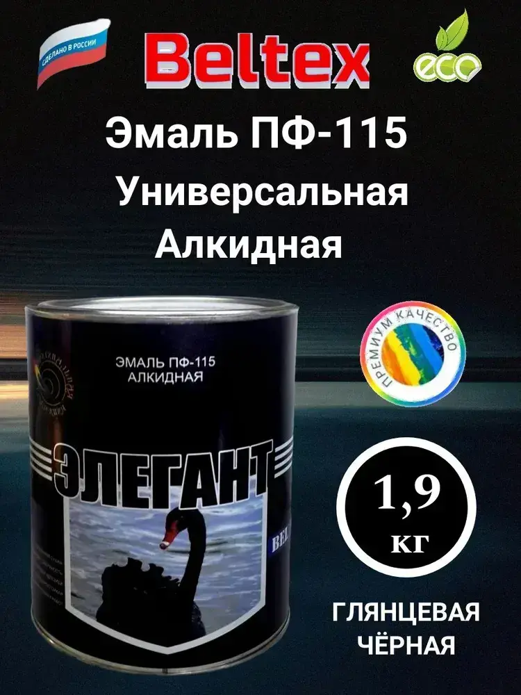 Краска Эмаль черная ПФ-115 Белтекс /элегант/ 1.9 кг по дереву, металлу, кирпичу и бетону, для наружных и внутренних работ