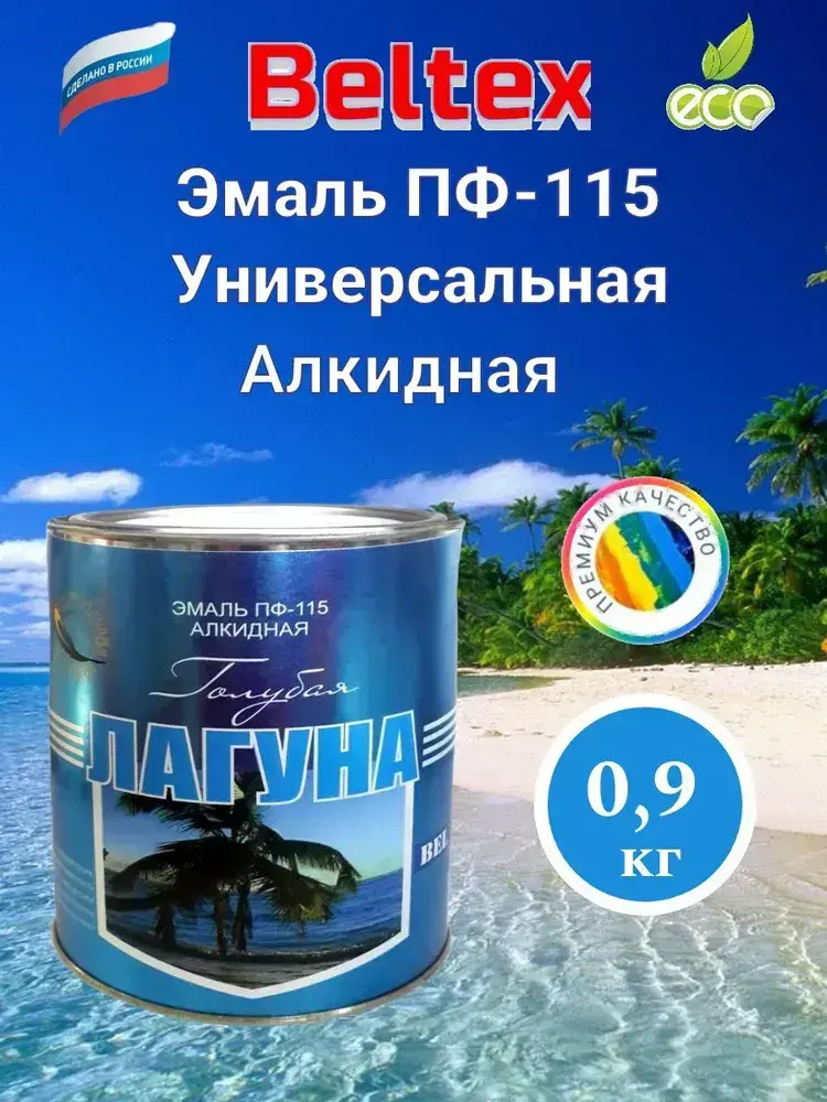Краска Эмаль голубая лагуна ПФ-115 Белтекс 0.9 кг по дереву, металлу, кирпичу и бетону, для наружных и внутренних работ