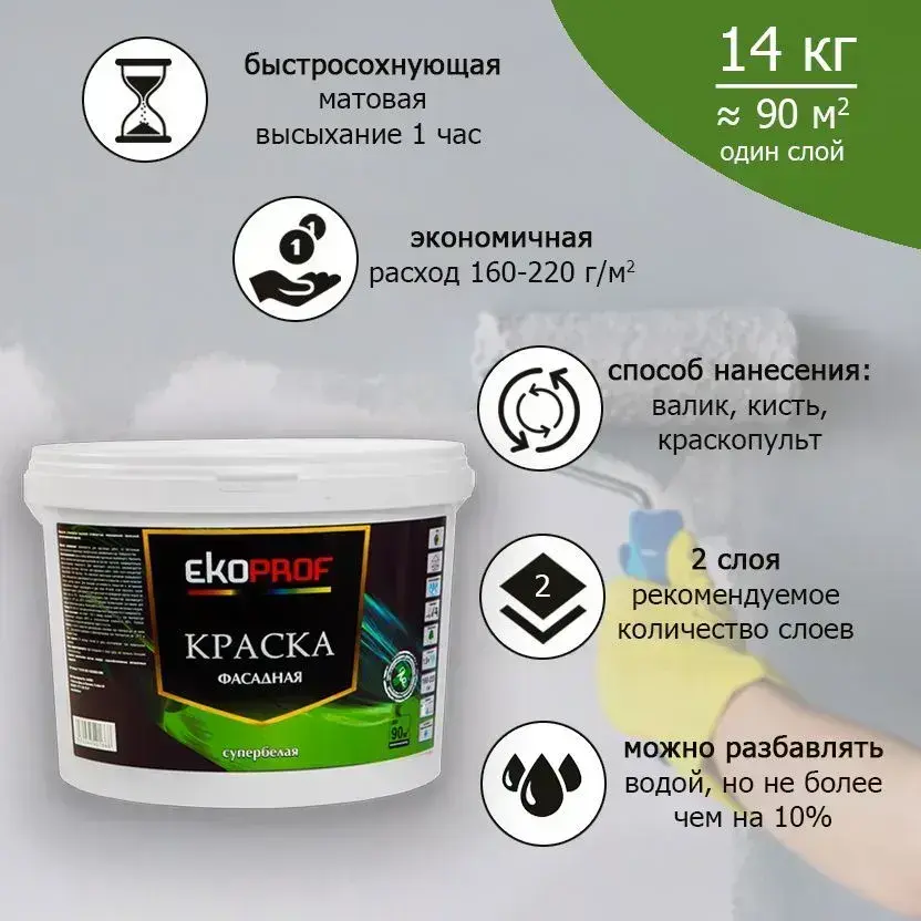 Краска Фасадная Akrimax 14 кг, атмосферостойкая, влагостойкая для наружных и внутренних работ, без запаха, быстросохнущая водно-дисперсионная, акриловая, матовое покрытие, белый