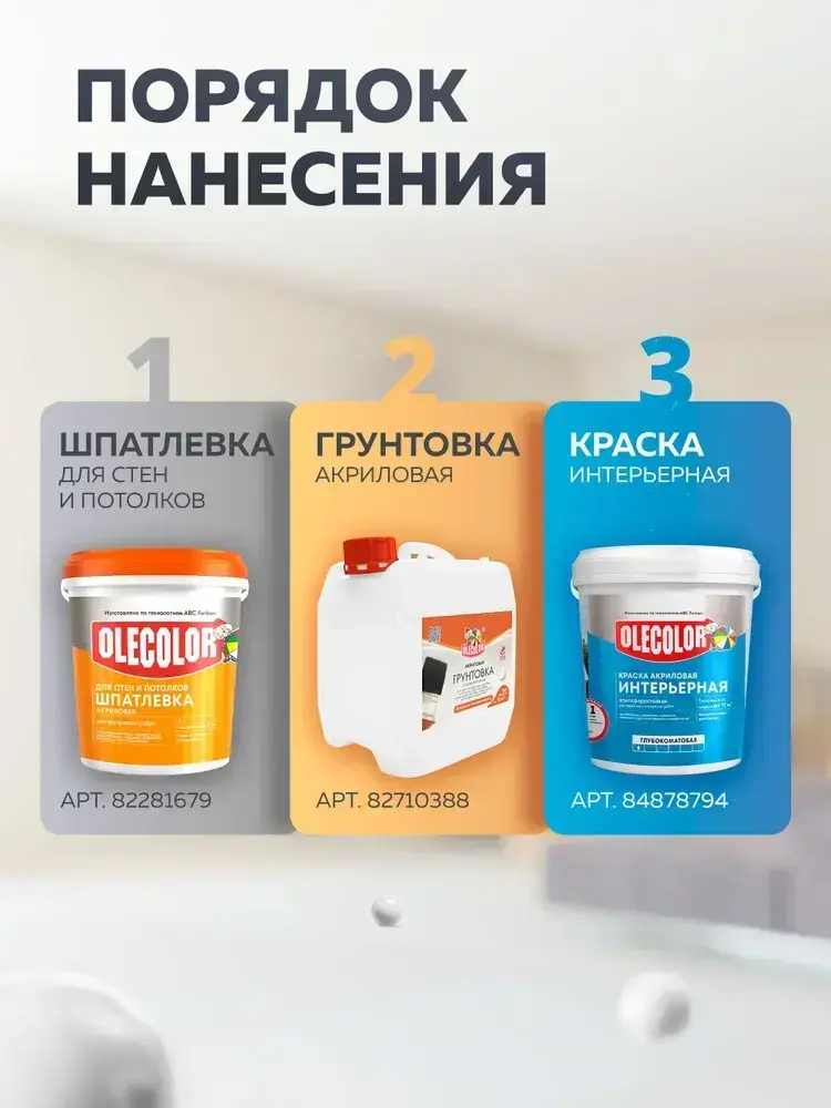 Краска интерьерная ОLECOLOR для стен и потолков, 1 кг, белая, без запаха, Быстросохнущая, Акриловая, Водоэмульсионная, Матовое покрытие