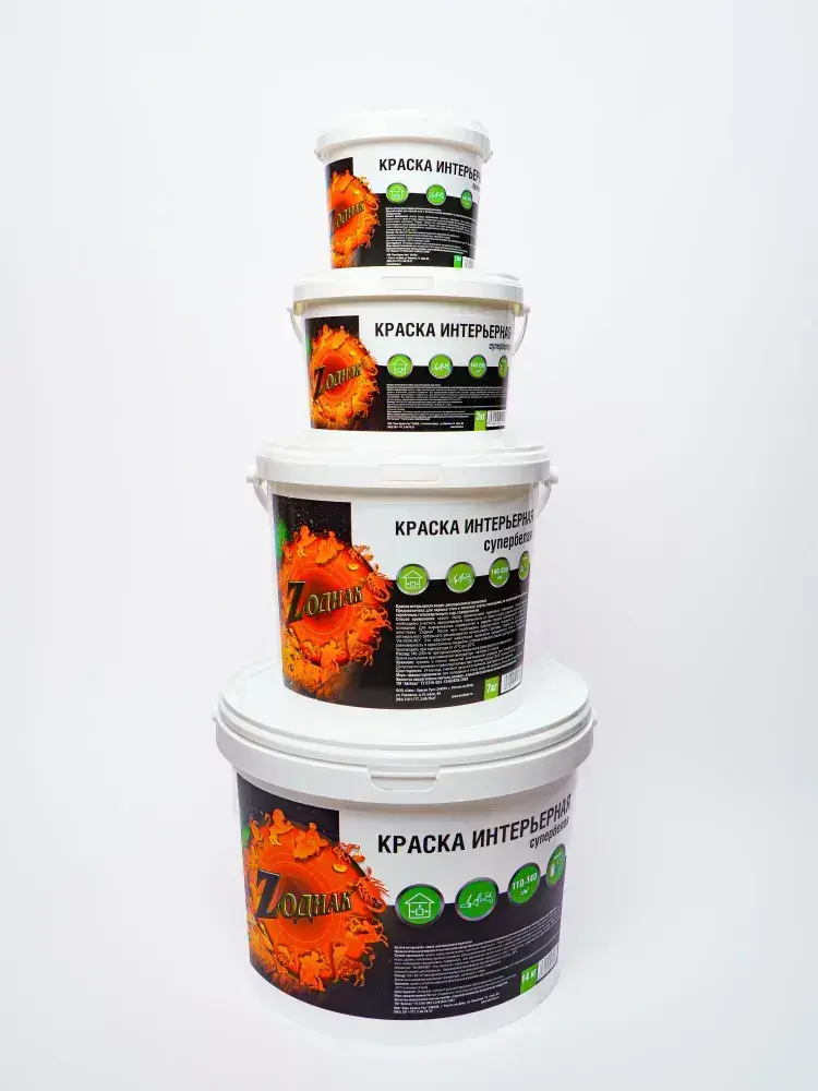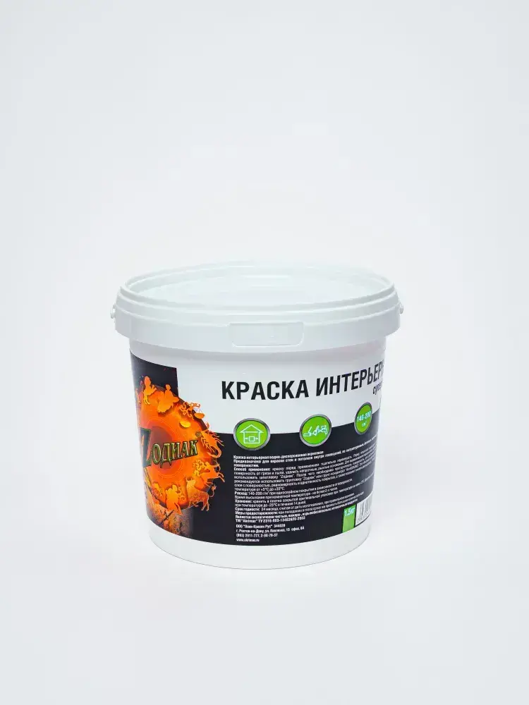 Краска интерьерная супербелая 1,5 кг ZОДИАК для стен и потолков, акриловая, быстросохнущая, матовое покрытие, белый