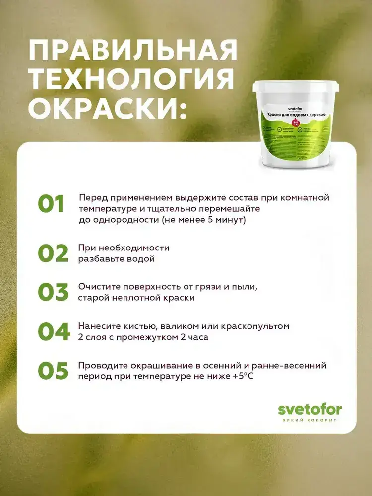Краска побелка для садовых деревьев Svetofor F4 Белая (3 кг)