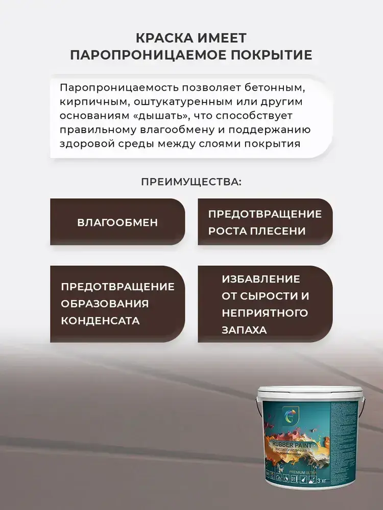 Краска Резиновая SYIFAT 3кг Цвет: Шоколадный RAL 8017 Для наружных и внутренних работ Матовая Без запаха, Для Дерева, Бетона, Кирпича, Кровли, По металлу Акриловая, Моющаяся, Быстросохнущая