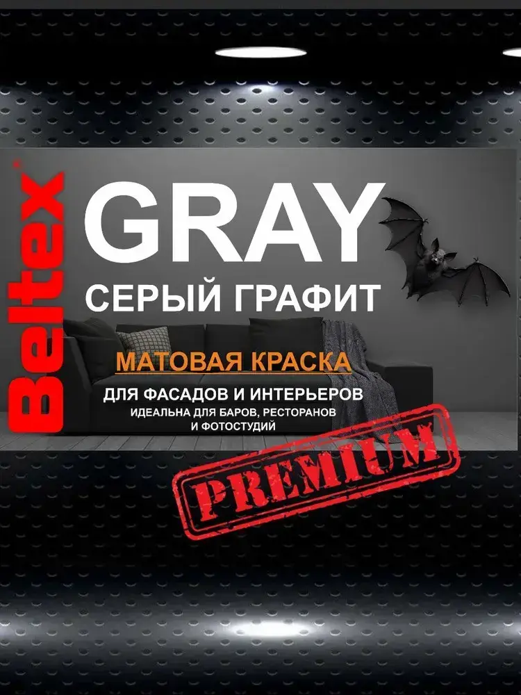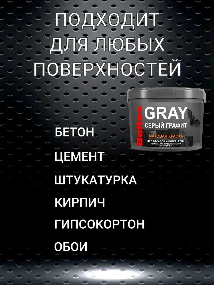 Краска серый графит Beltex GRAY (9 л) универсальная, матовая, для стен, потолков, фасадов, элементов интерьера
