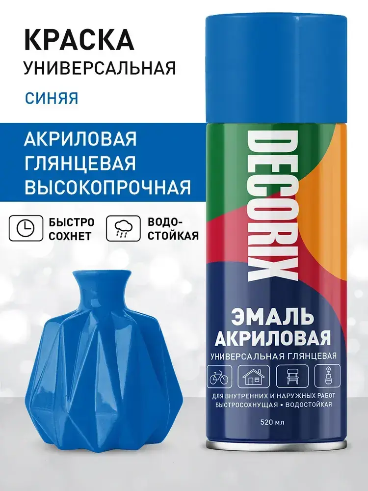 Краска синяя в баллончике глянцевая акриловая DECORIX - эмаль аэрозольная для любых поверхностей 520 мл