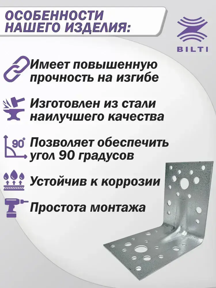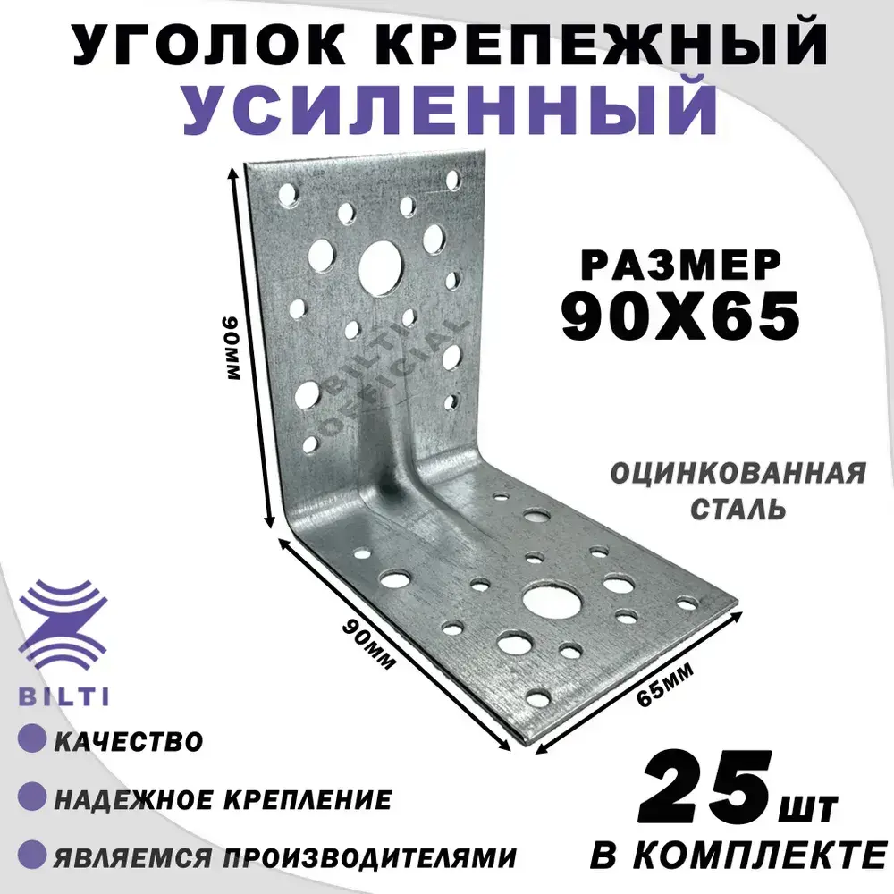 Крепежный уголок усиленный 90х65 мм (25 шт.)