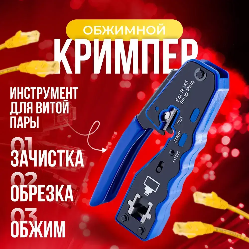 Кримпер rj45 для обжима витой пары, сквозной, многофункциональный, синий