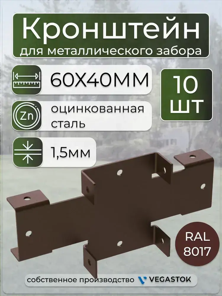 Кронштейн крепёжный Х-кронштейн для забора 60х40 10шт ral 8017