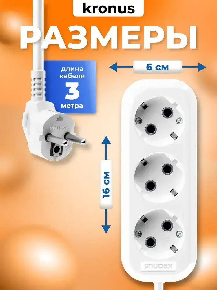 Kronus Удлинитель сетевой 3м 3 розетки с заземлением