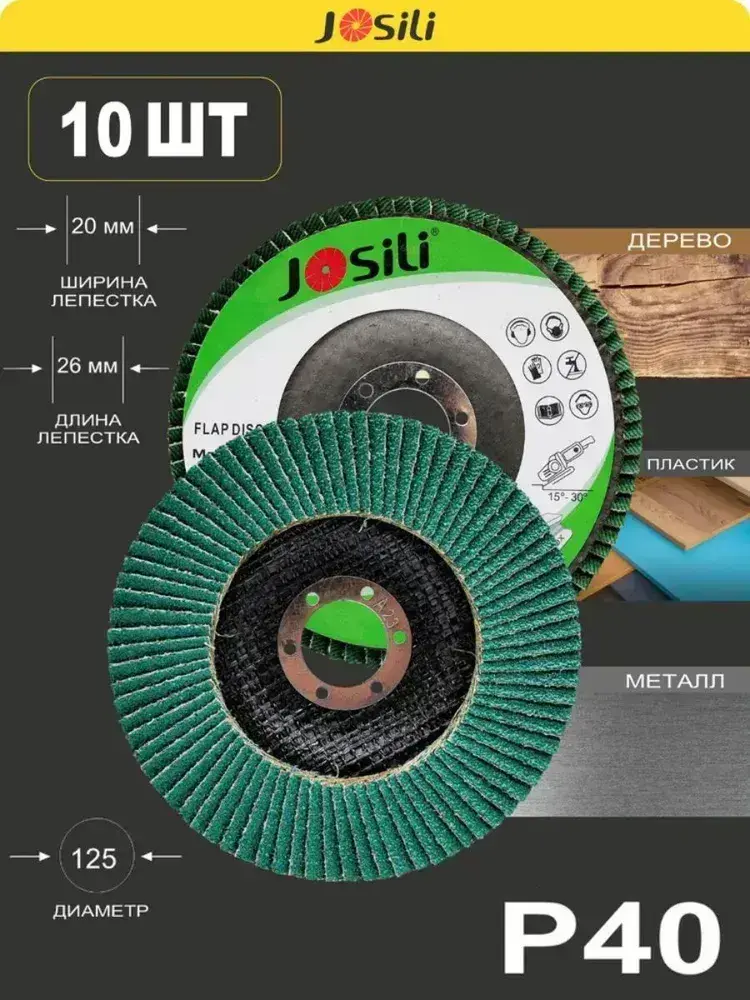 Круг лепестковый торцевой 125 мм Р40 ЦИРКОНИЕВЫЙ PROFI набор 10 шт