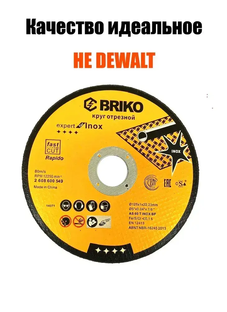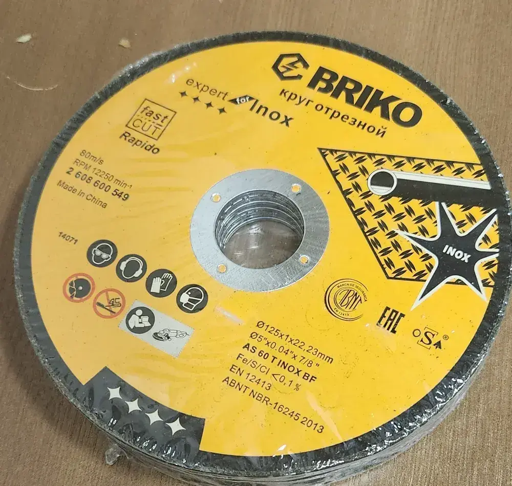 Круг отрезной BRIKO по нержавеющей стали /по металу 125х22х1 мм /диск отрезной