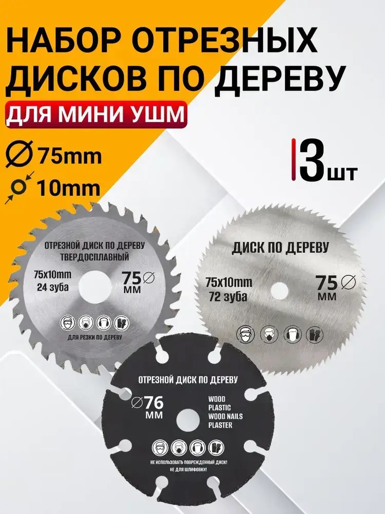 Круг отрезной для УШМ 75 по дереву, диск пильный, шлифовальный, для мини болгарки, режущий, расходный материал 3шт