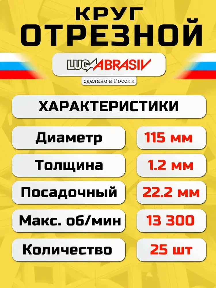 Круг отрезной по металлу 115 х 1,2 х 22,2 "LUGAABRASIV" (25 шт)