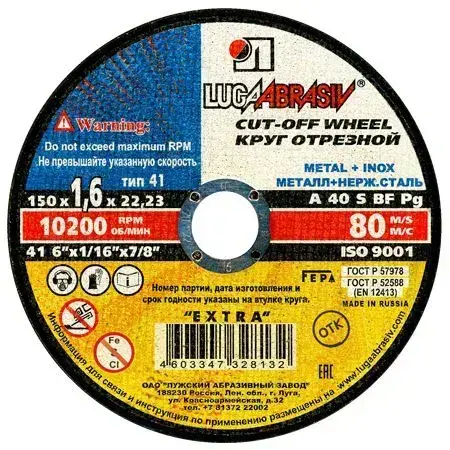 Круг отрезной по металлу 150 x 1.6 x 22 (10 шт)