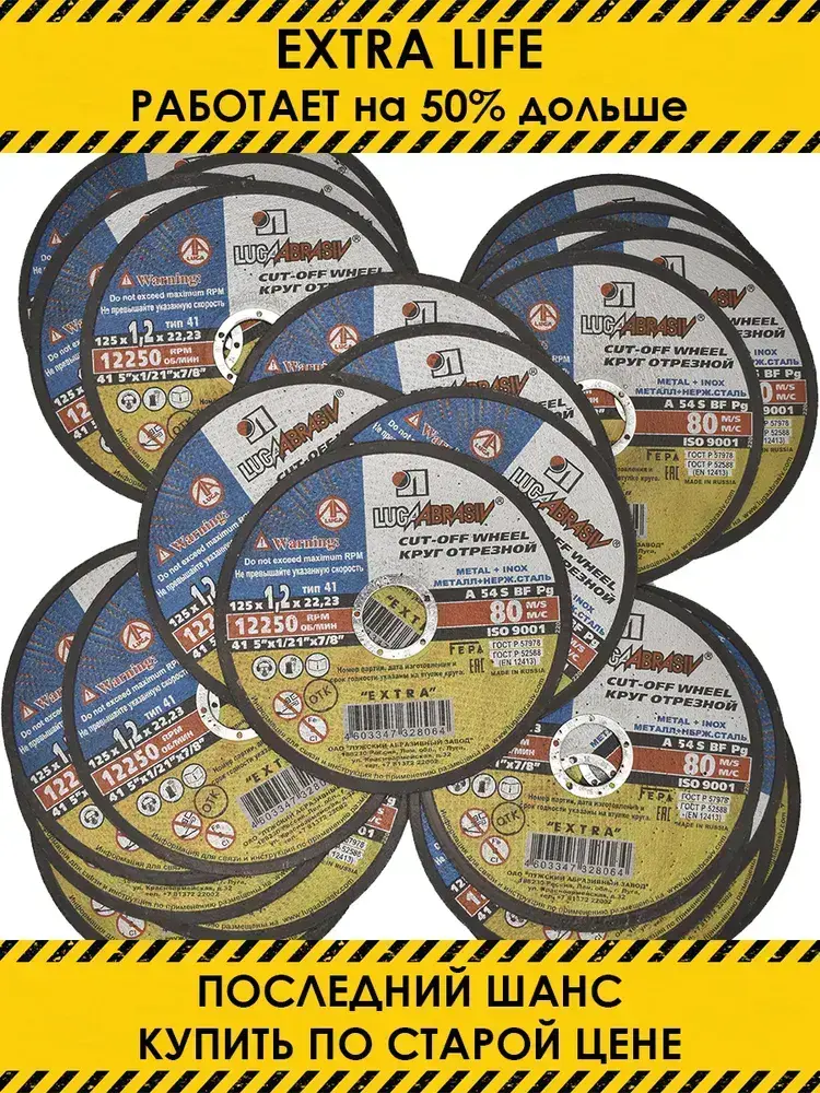 Круг отрезной по металлу. Луга Абразив 125 x 1,2 x 22, 25 шт.