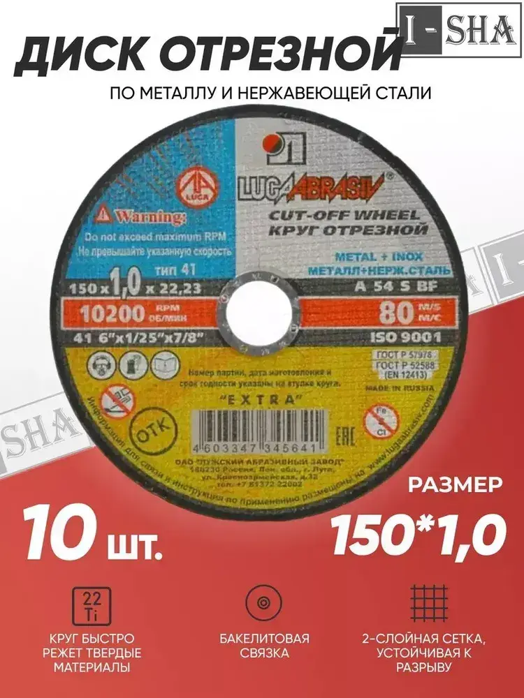 Круг отрезной по металлу Луга Абразив 150х1.0, 10 шт.