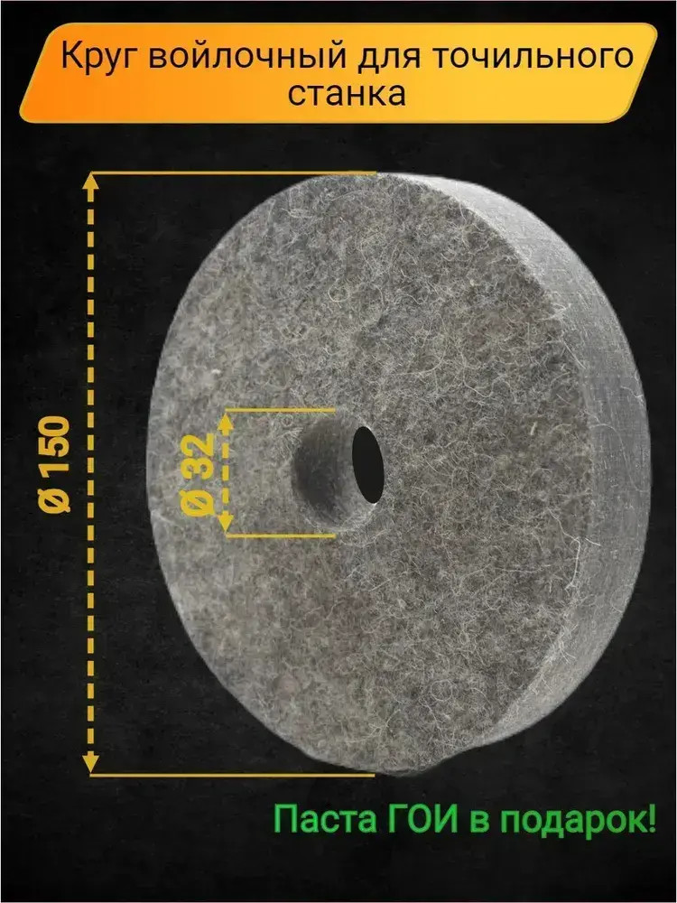 Круг войлочный полировальный для точильного станка с пастой ГОИ, диск 150х25 посадка 32