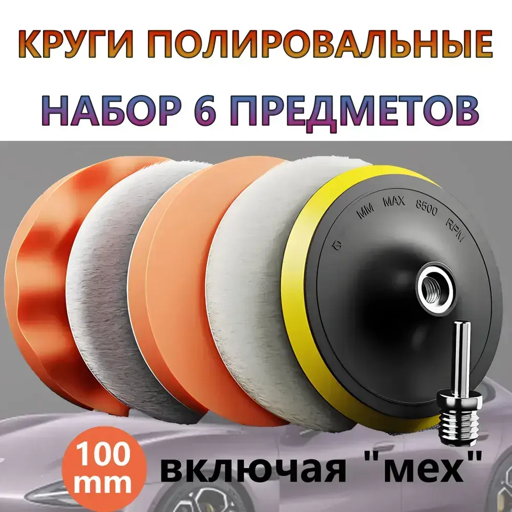 Круги полировальные для полировки кузова авто и фар, губка для автомобиля, насадки 100 мм