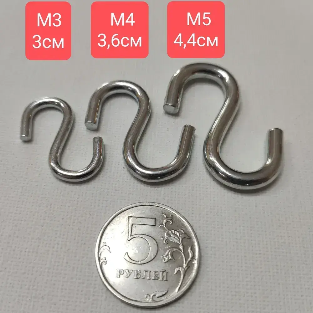 Крючок универсальный S-образный м3 (длина 3 см) - 10 штук
