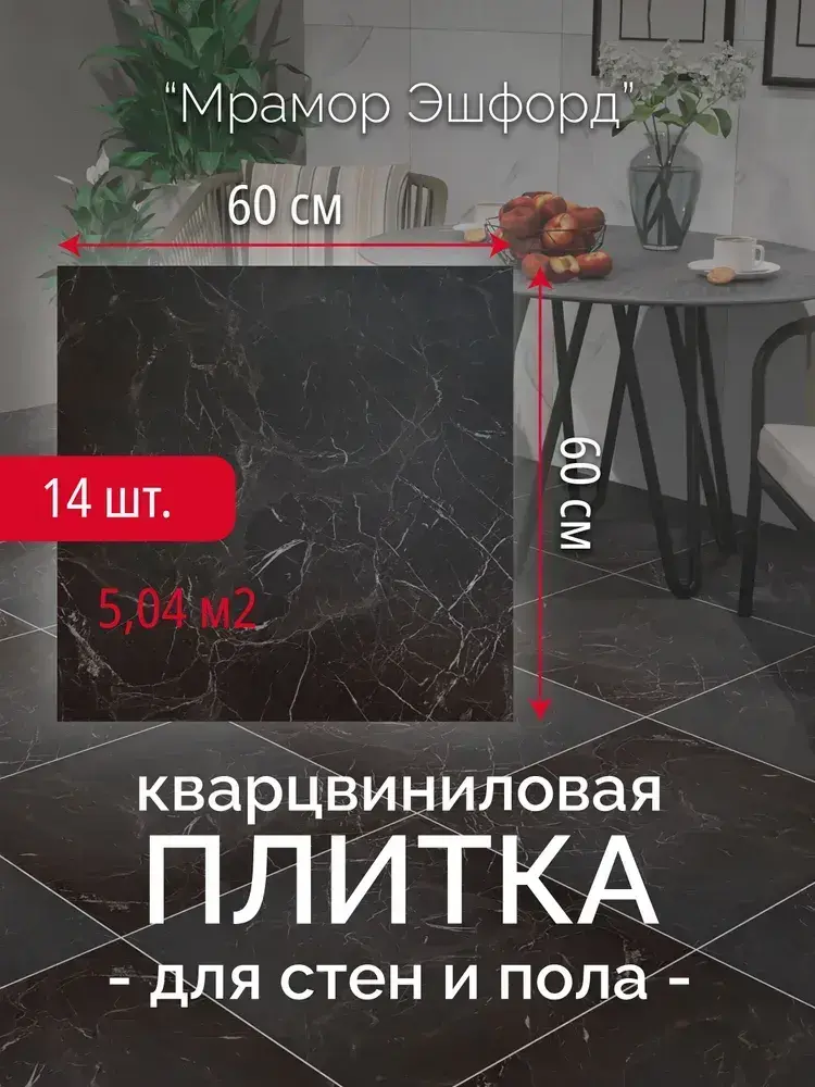 Кварцвиниловая плитка для пола и стен самоклеящаяся влагостойкая "Мрамор Эшфорд" клеевая 60 х 60 см 14 шт. вместо линолеума, ламината и керамогранита