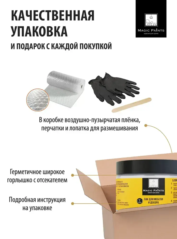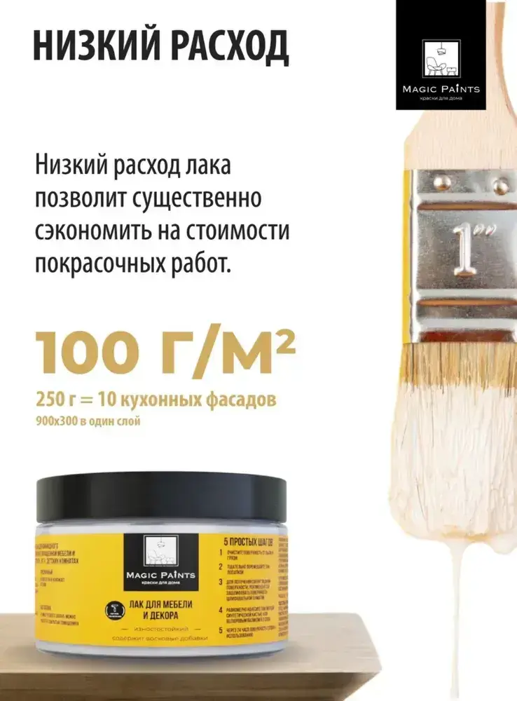 Лак акриловый для мебели и декора, защиты и творчества, износостойкий матовый бесцветный Magic Paints, 0.25 кг
