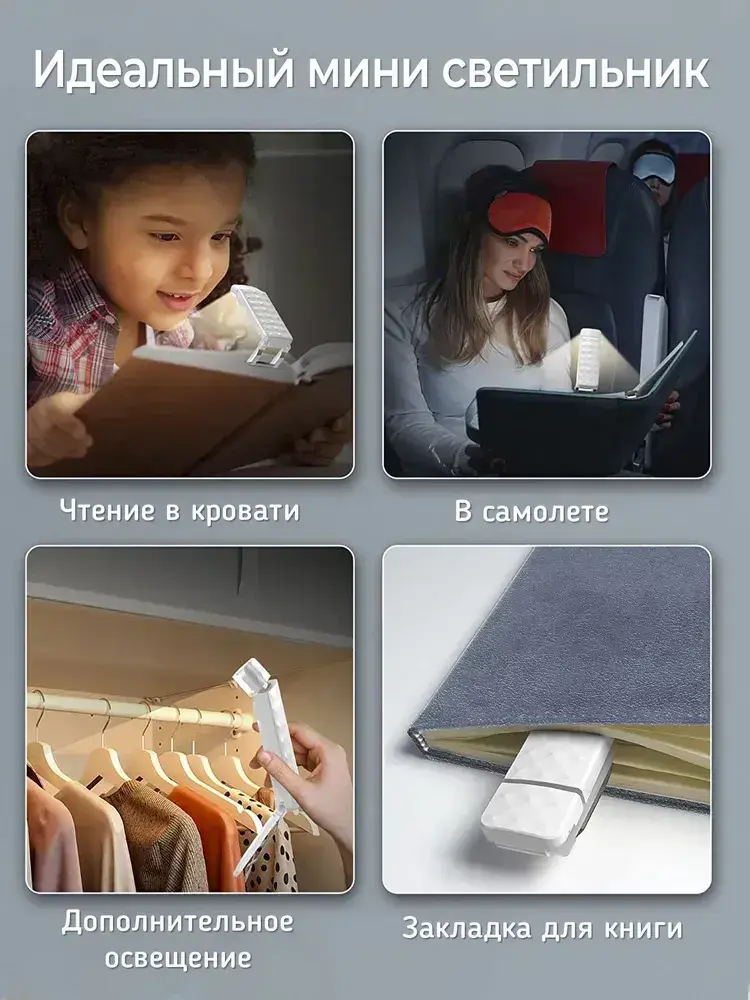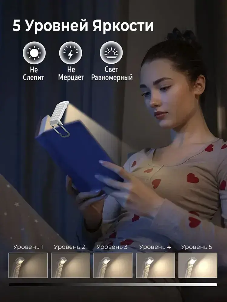 Лампа для чтения, фонарик для книги, светильник на прищепке, подсветка на книгу