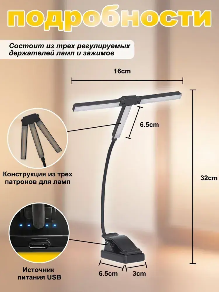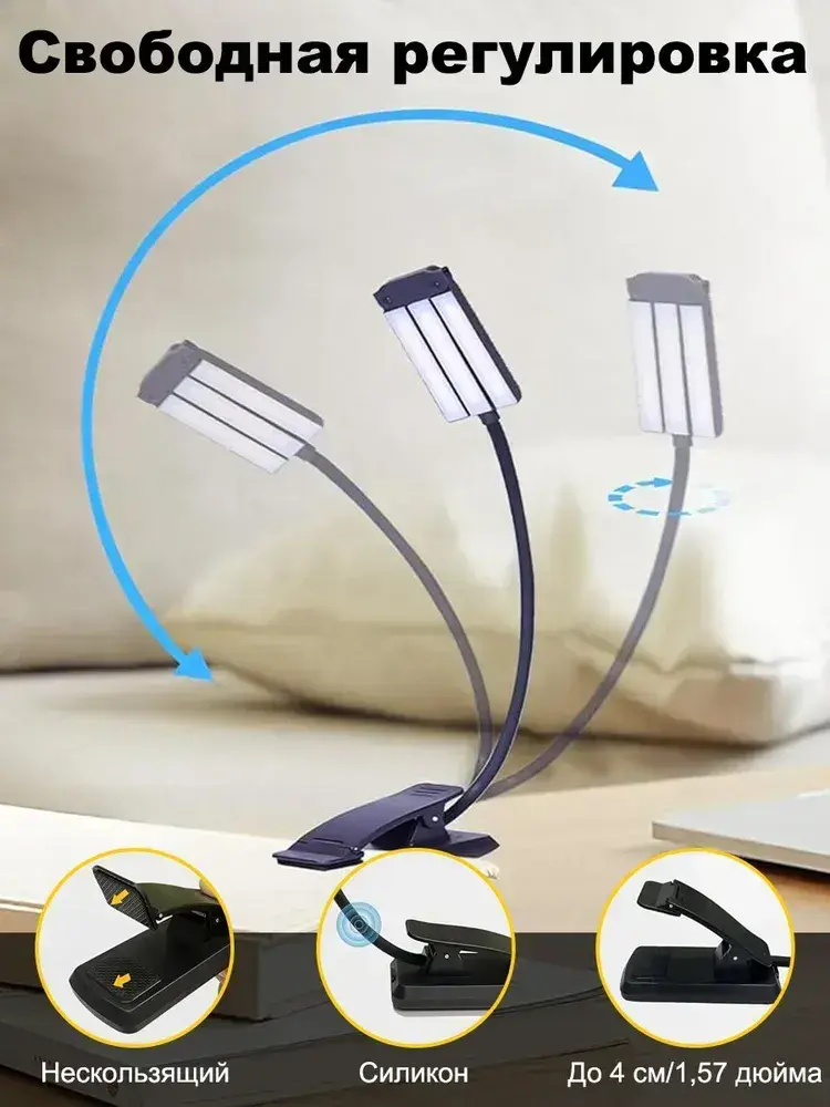 Лампа для чтения на прищепке черная,фонарик для чтения книги беспроводной.