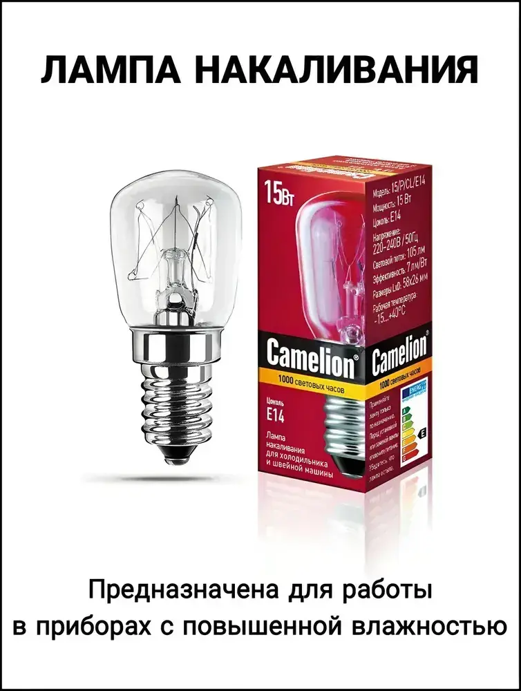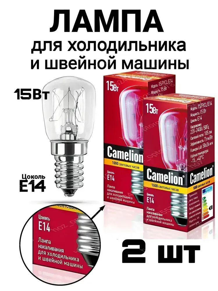 Лампа накаливания Camelion для холодильников , швейных машин , светильников , Е14 , 15 Вт, 2 штуки