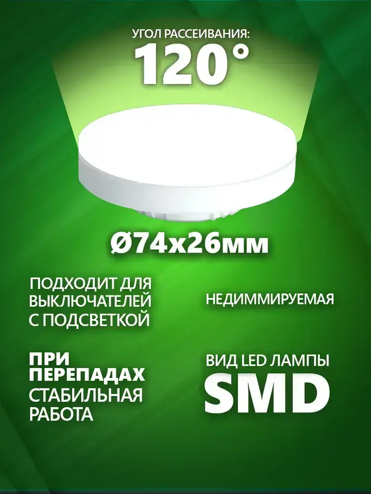 Лампа светодиодная GX53 15W 4000K нейтральный свет, SAFFIT SBGX5315 55192, 5 шт