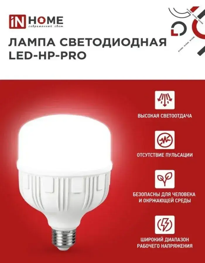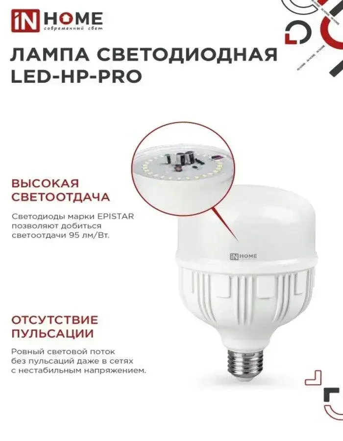Лампа светодиодная LED-HP-PRO 80Вт 230В E27 с адаптером Е40 6500К 7200Лм IN HOME