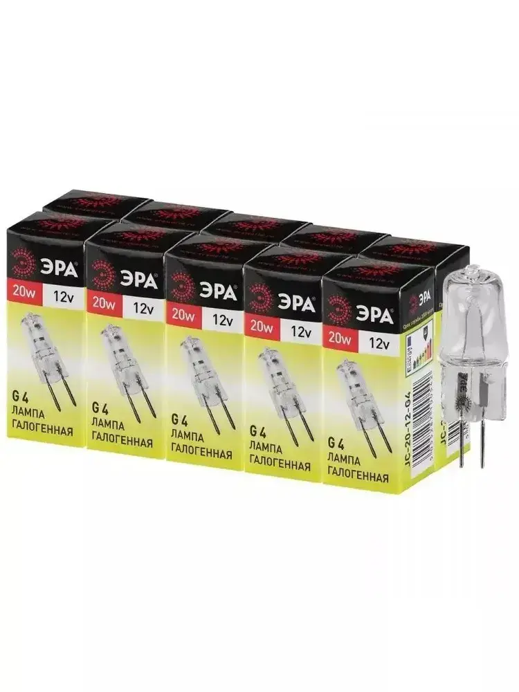Лампочка галогенная ЭРА G4 20 Вт JC капсула 3000К теплый белый свет набор 10 штук