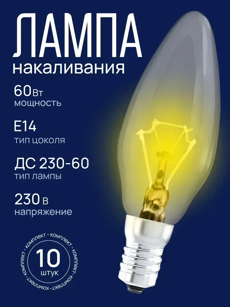 Лампочка накаливания Е14 60вт, набор 10 штук