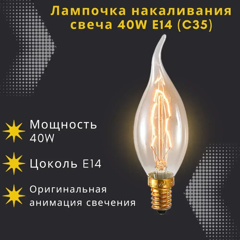 Лампочка накаливания винтажная свеча СW35 Е14 40W