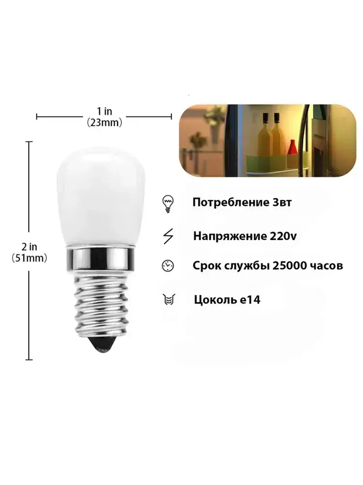Лампочка светодиодная для холодильников, микроволновок, швейных машин, Е14 3Вт 220V (2шт)