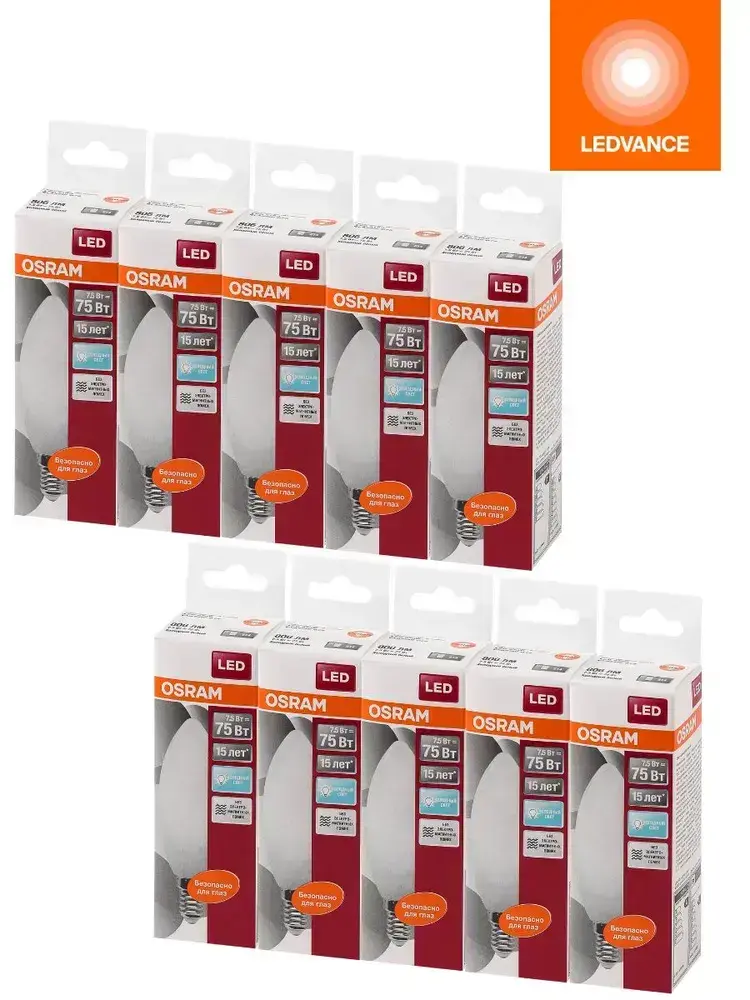 Лампочка светодиодная Е14 OSRAM, свеча, 7.5Вт, 4000К нейтральный белый свет, 10 шт