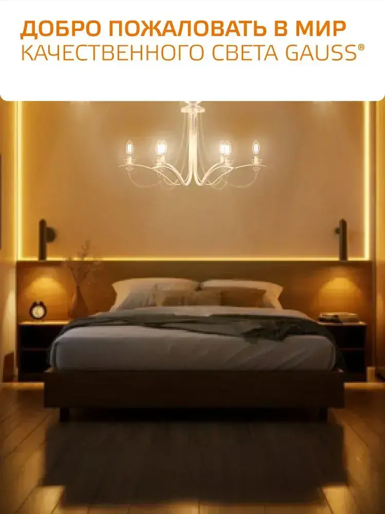 Лампочка светодиодная Е14 Свеча 5,5W Комплект 3 шт. теплый свет 2700К Gauss Filament