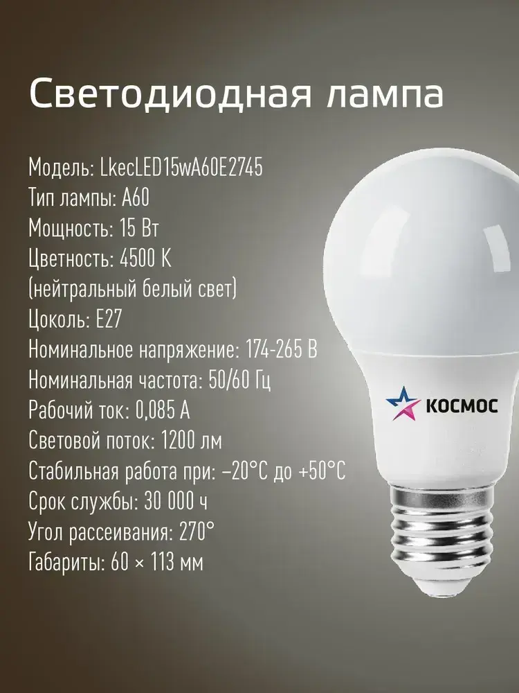 Лампочка светодиодная e27 15 ВТ дневной свет 4шт