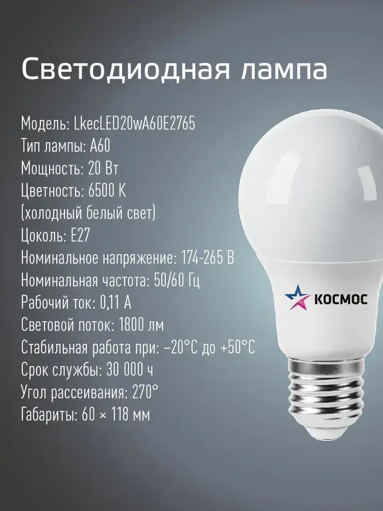 Лампочка светодиодная Е27 20 ВТ холодный свет 4 шт