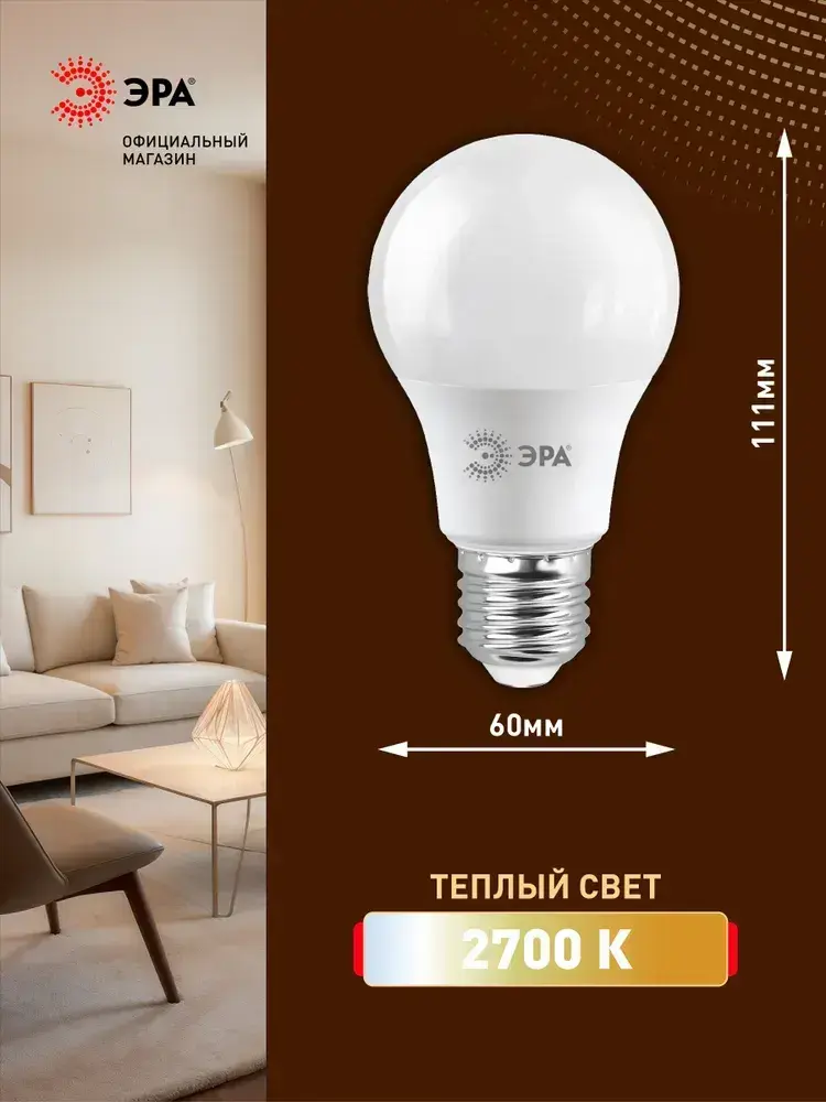 Лампочка светодиодная ЭРА LED Е27 15 Вт A60 груша 2700К теплый белый свет набор 10 штук