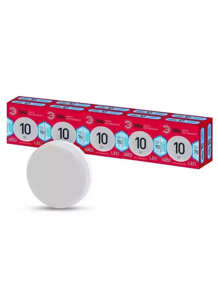 Лампочка светодиодная ЭРА LED GX53 10 Вт таблетка 4000К нейтральный белый свет набор 10 штук