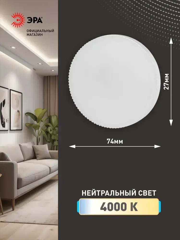 Лампочка светодиодная ЭРА LED GX53 8 Вт таблетка 4000К нейтральный белый свет набор 10 штук
