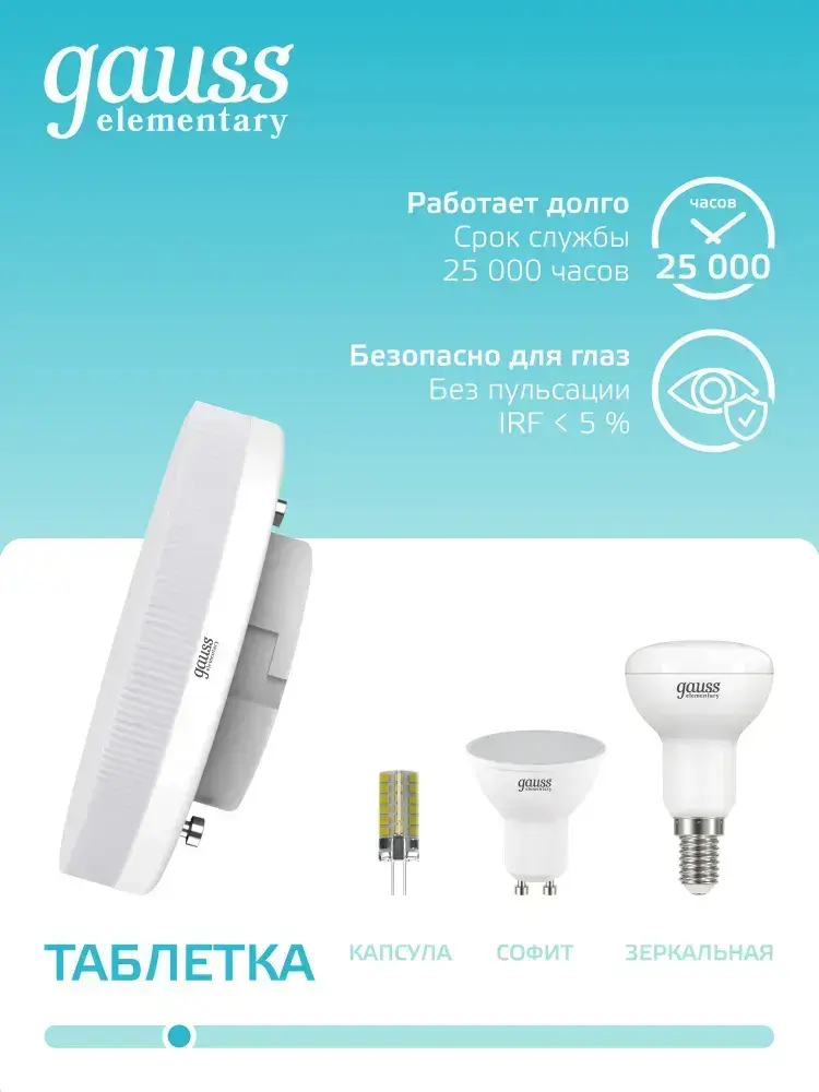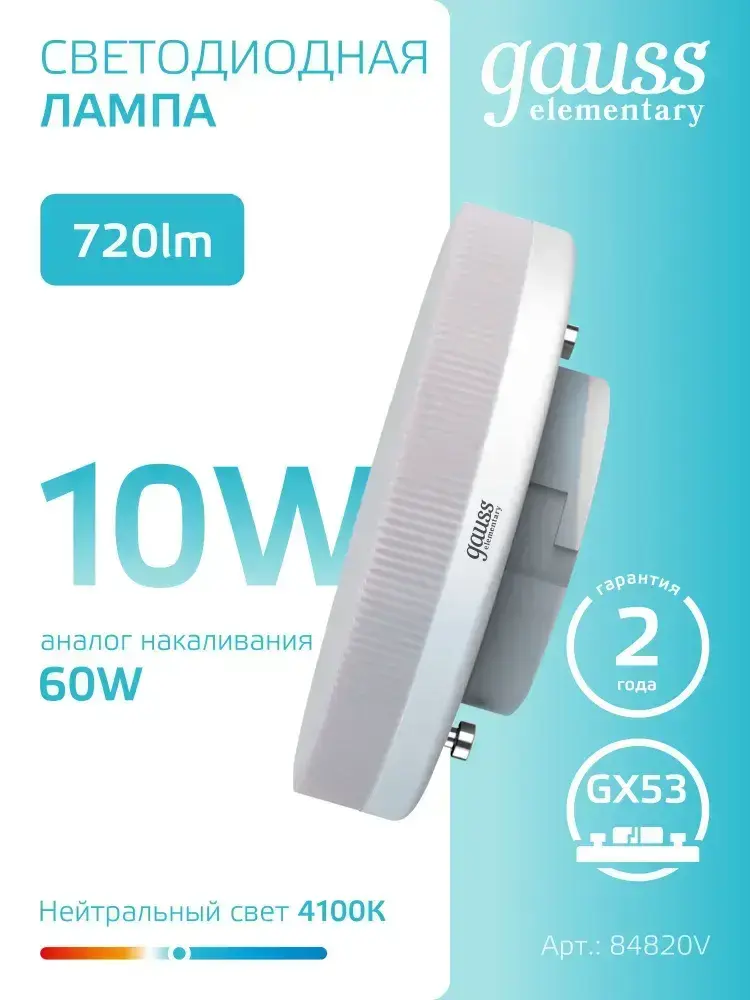Лампочка светодиодная GX53 10W нейтральный белый свет 4100К УПАКОВКА 5 шт. Gauss Elementary