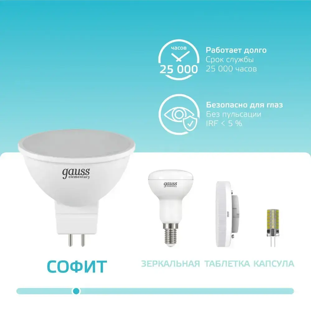 Лампочка светодиодная MR16 GU5.3 5.5W нейтральный белый свет 4100К УПАКОВКА 10 шт. Gauss Elementary