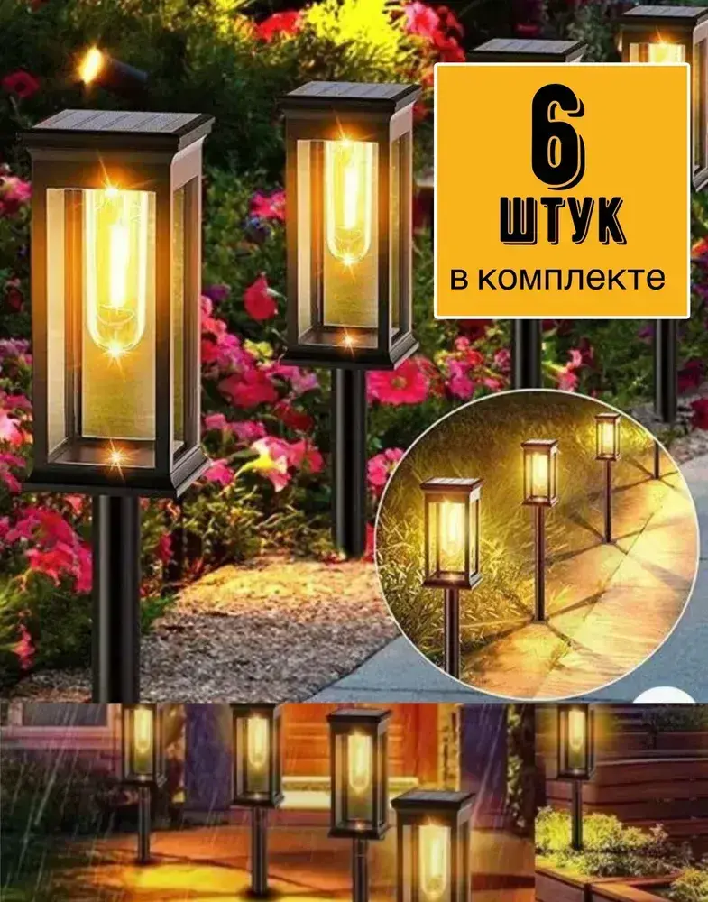 Ландшафтный фонарь на солнечной батарее садовый / беспроводной светильник дачный высота 50 см. / комплект 6 шт.