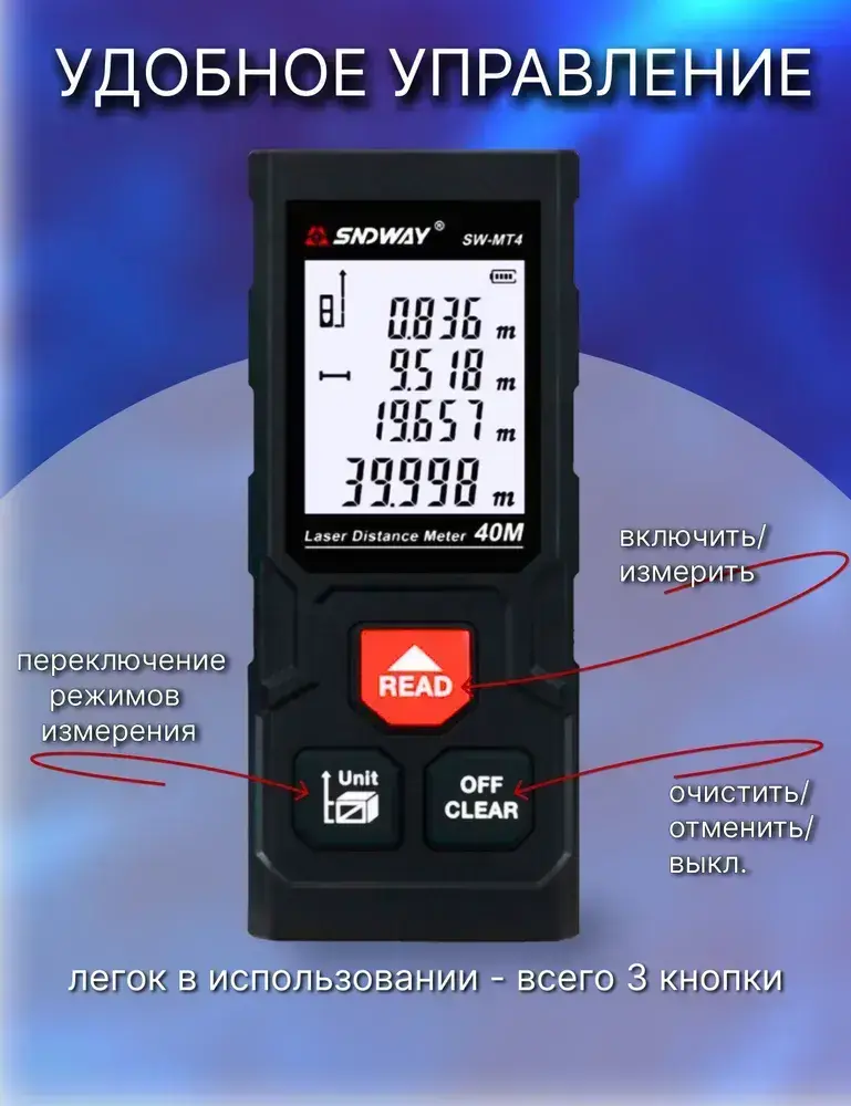 Лазерная рулетка дальномер SNDWAY 40 метров