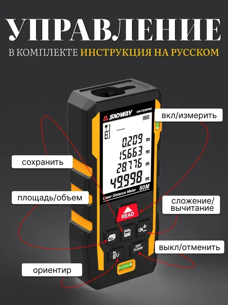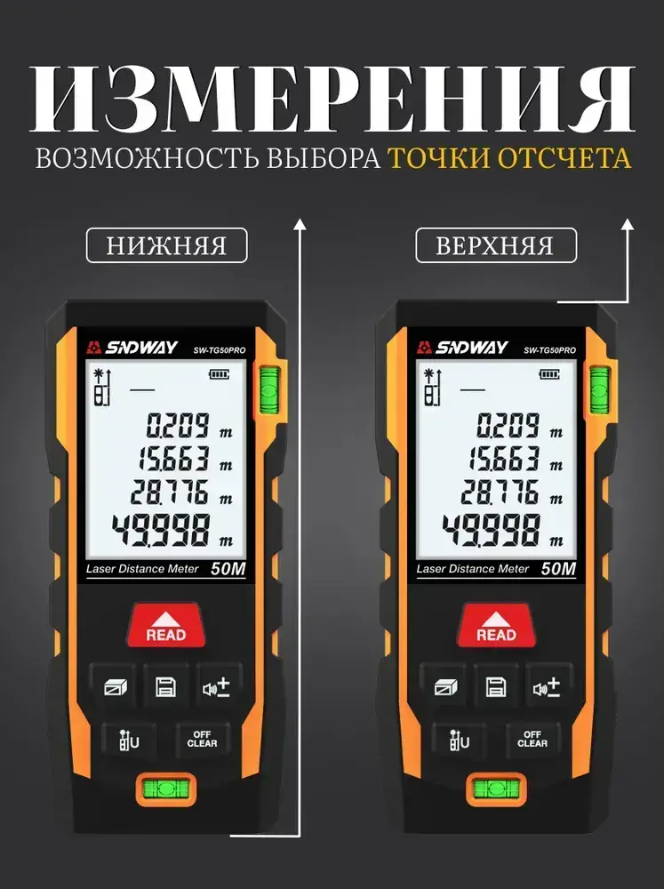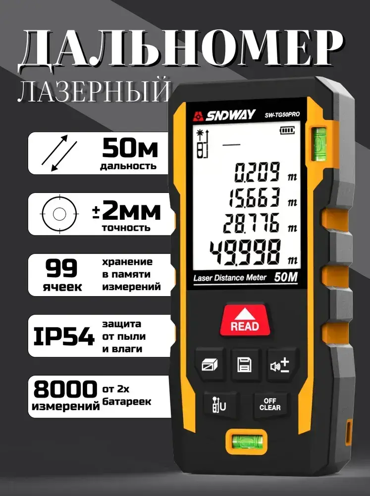 Лазерный дальномер 50м рулетка строительная SW-TG50PRO