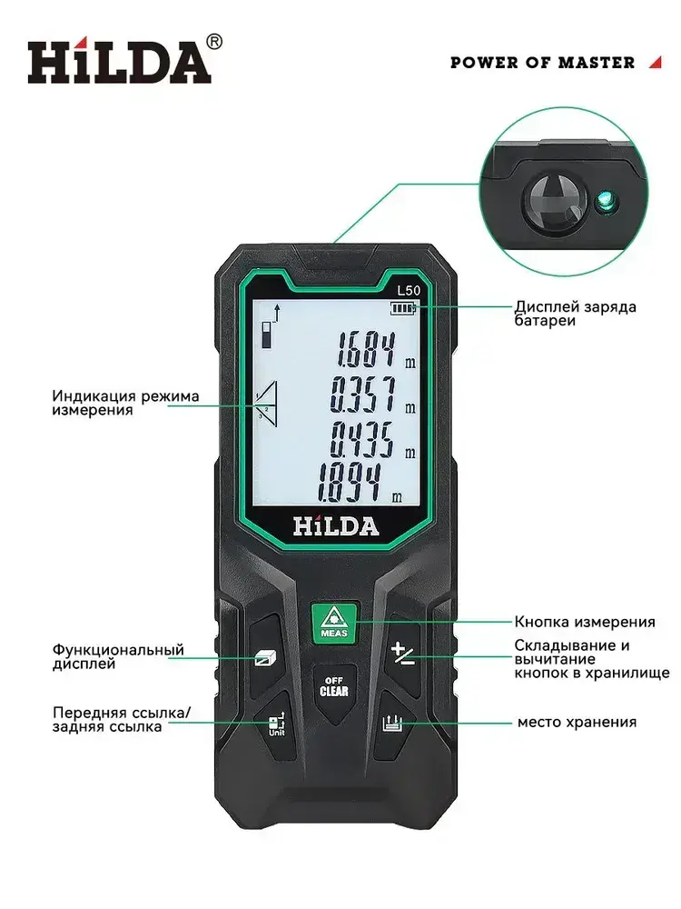 Лазерный дальномер , Зелёный свет,50м 2.0 мм,Доступно на открытом воздухе