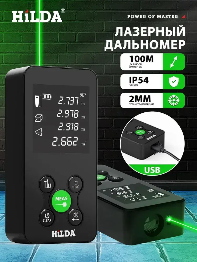 Лазерный дальноме,Зеленый луч,HILDA 100M