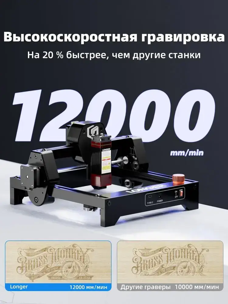 Лазерный гравер Longer Ray5mini, мощность лазера 3.5Вт 130*140mm рабочая зона скорость 12000мм/мин