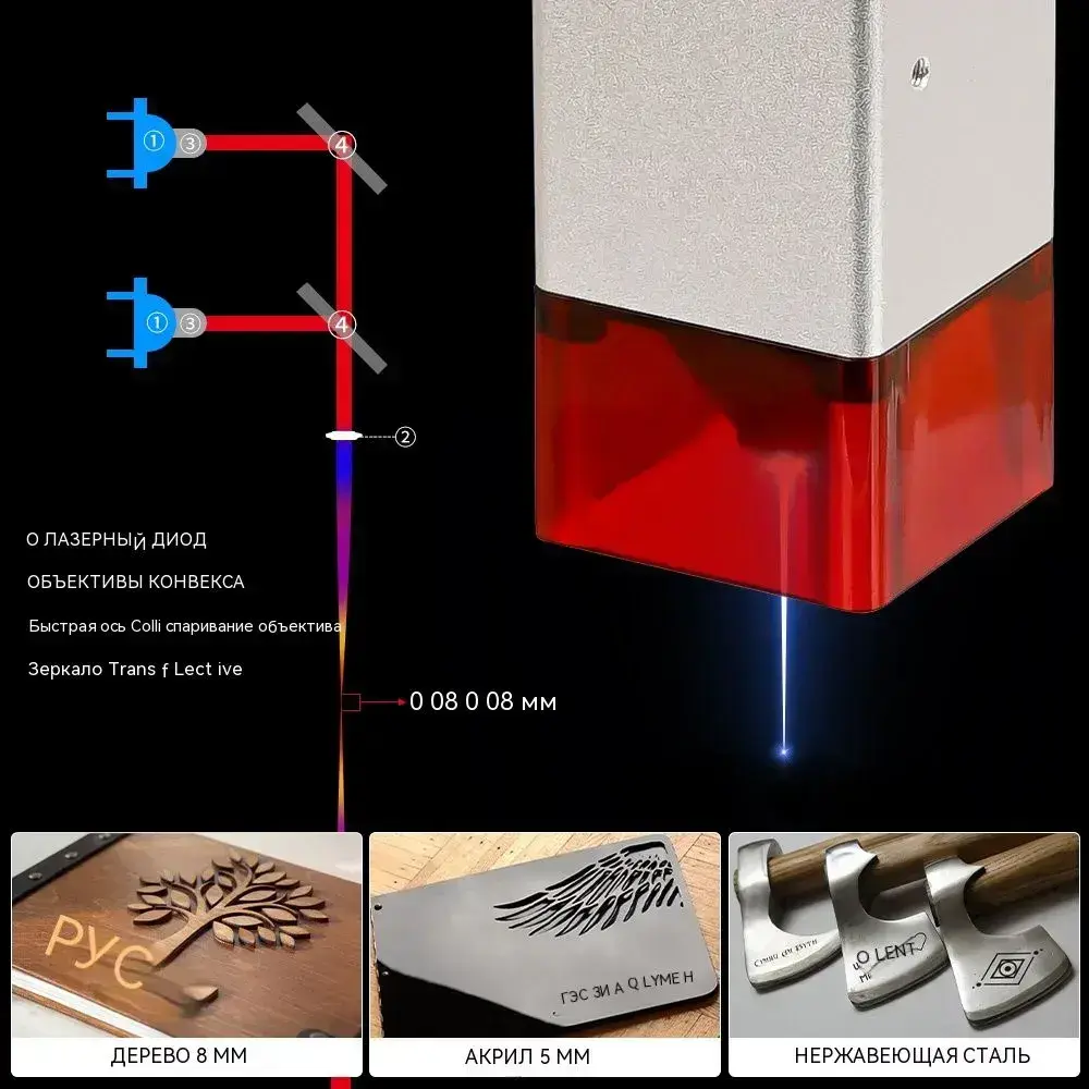 Лазерный модуль 10 Вт 24 В с модулем TTL воздушно-синей лазерной головки 450 нм для станка с ЧПУ